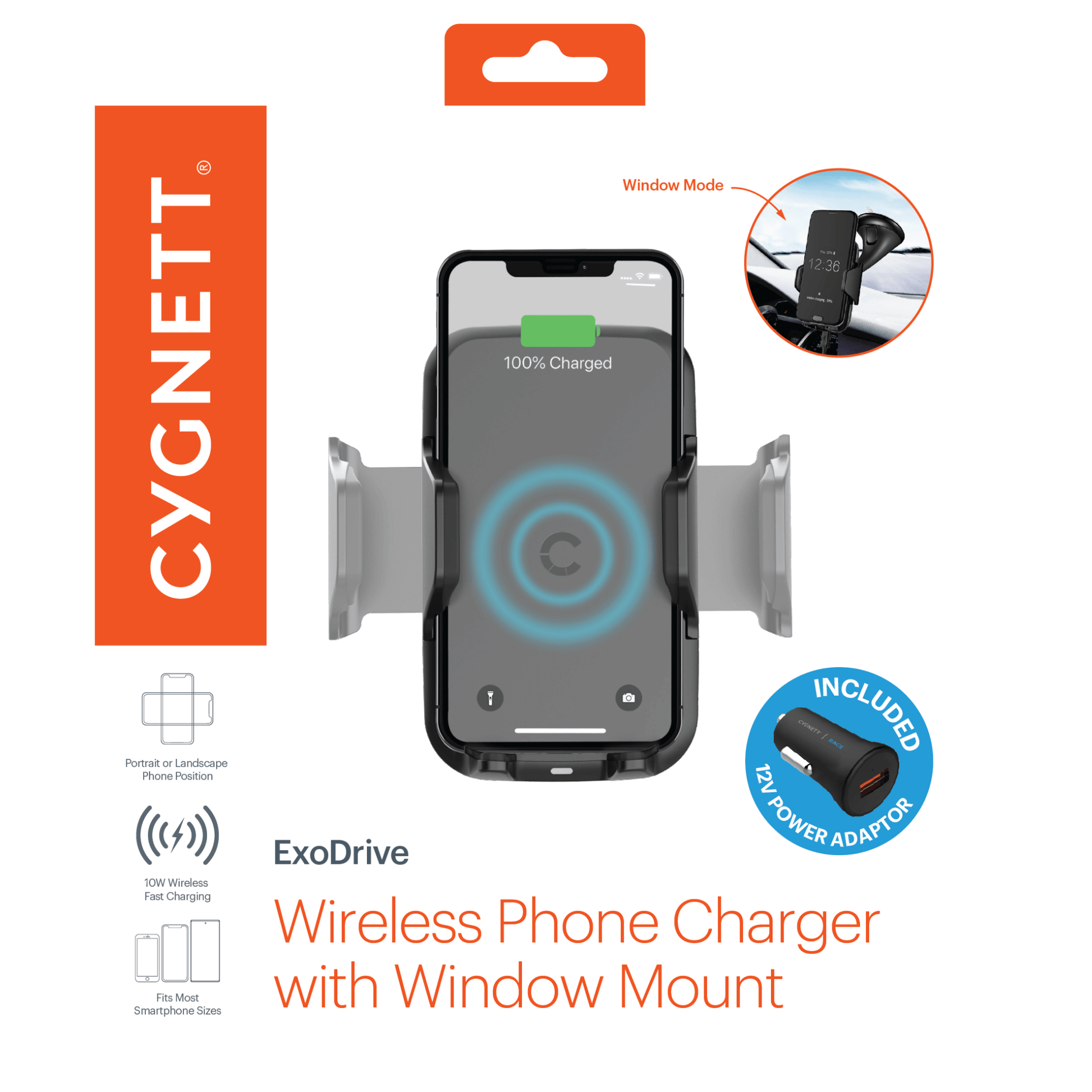 Cygnett ExoDrive Wireless Phone Charger with Window Mount for